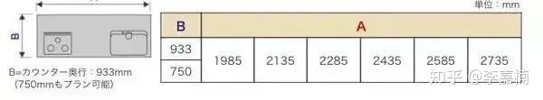 图中B为宽度:650mm。当然也有更窄的,国内也有做到550mm甚至500mm左右的。不过目前厨具越来越大的趋势加上考虑使用的便利性,建议做到650甚至700mm左右。A是标准尺寸的长度,可以做到豪华的3600mm。