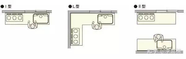 厨房平面布局模式、厨房的布局千变万化,归纳起来可以有如下一些布局方式:
