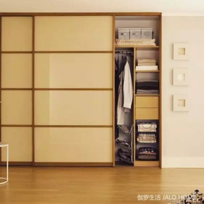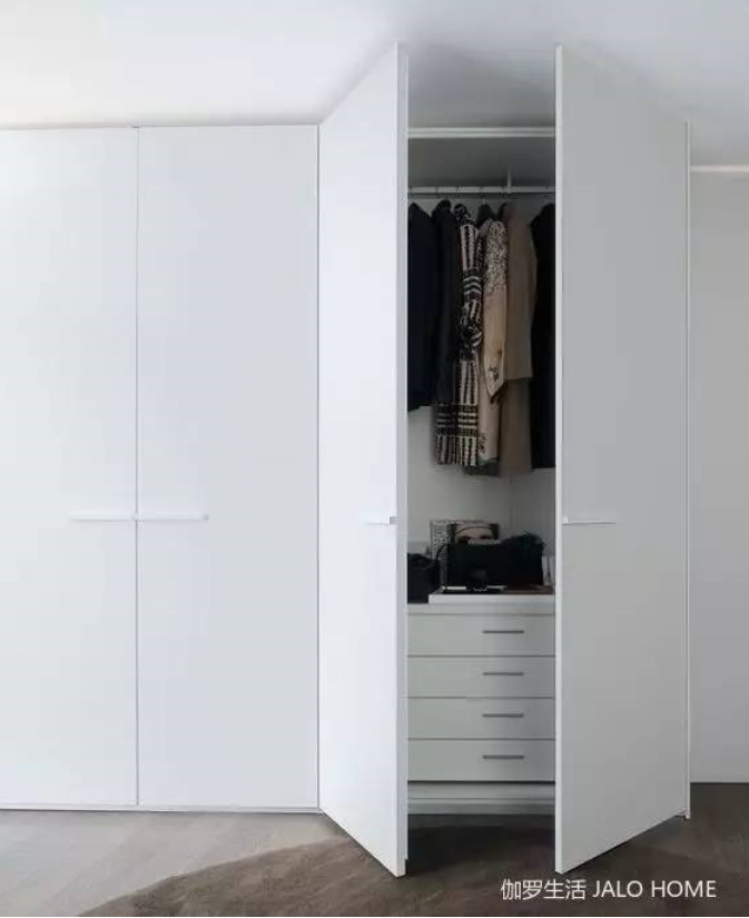衣柜好不好看除了取决于高度、门板的样式,还有门怎么开。现在市场上主要有平开门和推拉门两种,从美观来说,平开门好些,但如果五金质量有保障,推拉门更实用。