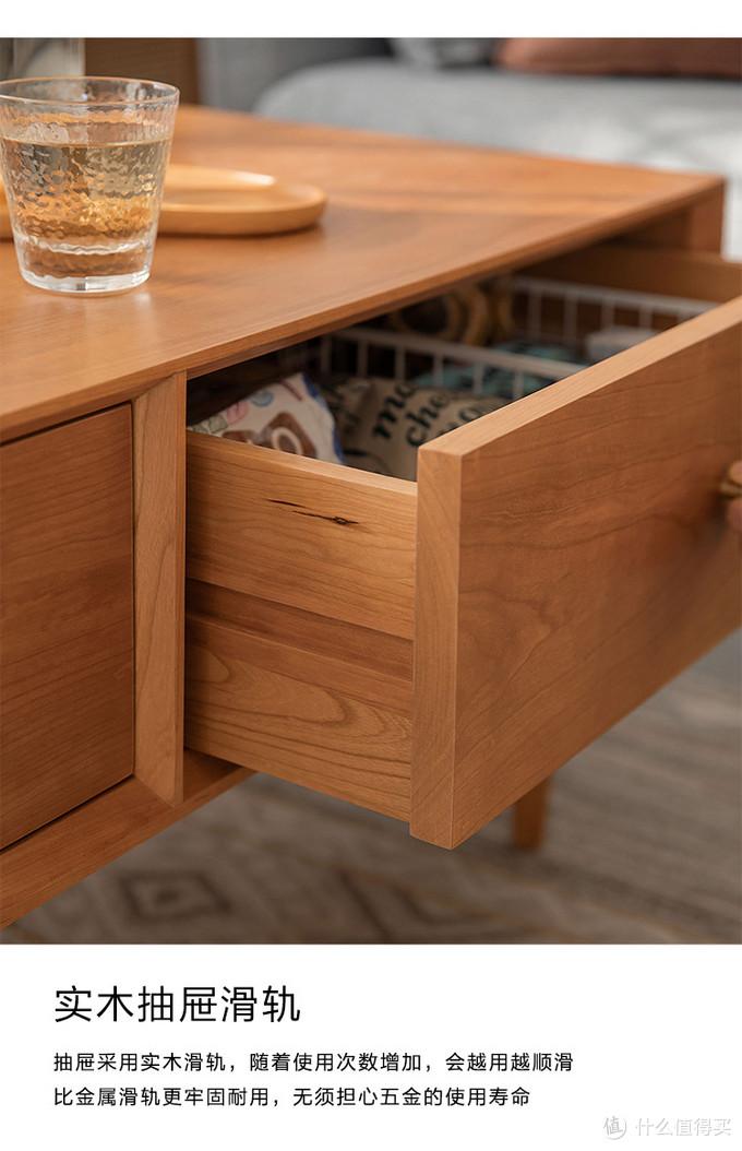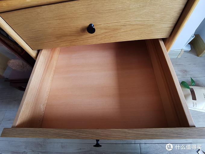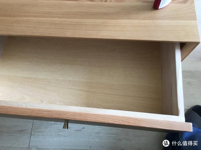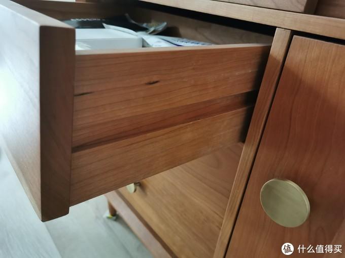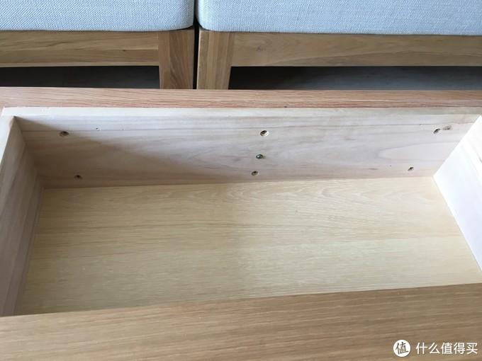 其次,我买的的时候,这个茶几的抽屉辅料是桐木(不知道现在换了没),抽屉使用木轨道抽拉。