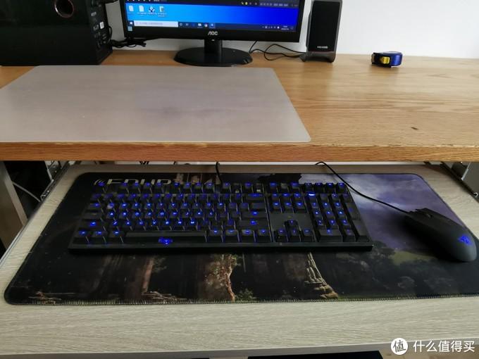 在显示器下可以安装键盘支架滑轨,配合一块木板,可以做出一块非常方便使用的键盘+鼠标托架,用来很方便,肩周炎犯病的次数也减少了。