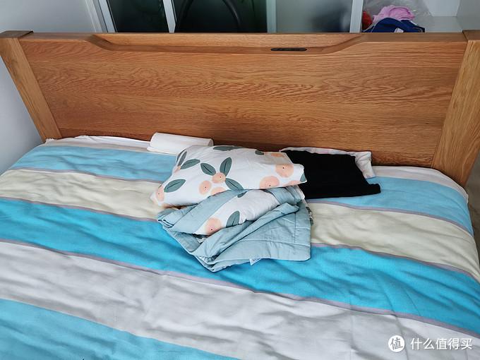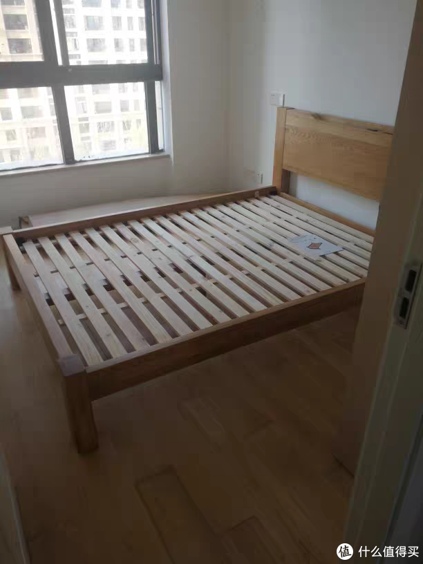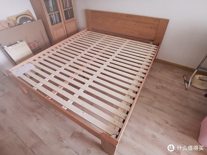 这张床是给父母买来临时过来住的时候用的,适配8cm左右厚度的薄床垫,今年618入手,180cm*200cm,透明清漆涂装。店家宣称这张床的主材为橡木,没说是白橡木。收货以后发现主材色泽偏暖、淡红色,不是白橡常见的淡黄色,所以主材应该是红橡木。