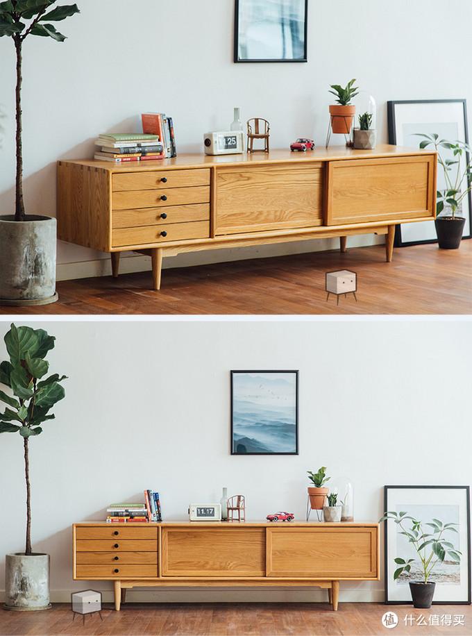 总体来说,对这俩柜子是很满意的,结构稳固,选料扎实,造型方面也是我自己喜欢的小细腿。黄色的白橡和大板花纹非常耐看。唯一称得上缺陷的可能就是溢价有些高了吧。不过这不是卖家的错,是我的错……