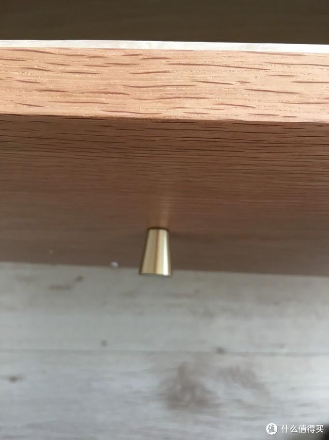 观察这个抽屉的面板,如果面板和抽屉侧板不是直接相连的,而是通过螺丝将抽屉面板和内部结构连接起来,内部抽屉辅料大概率为桐木。