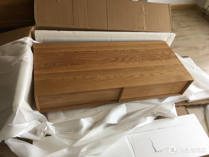 因为对木邻的餐边柜感觉尚可,所以继餐边柜后买了它家的这个茶几,1.3米长,白橡材质,入手价格2200多,没想到这一下掉坑里了。