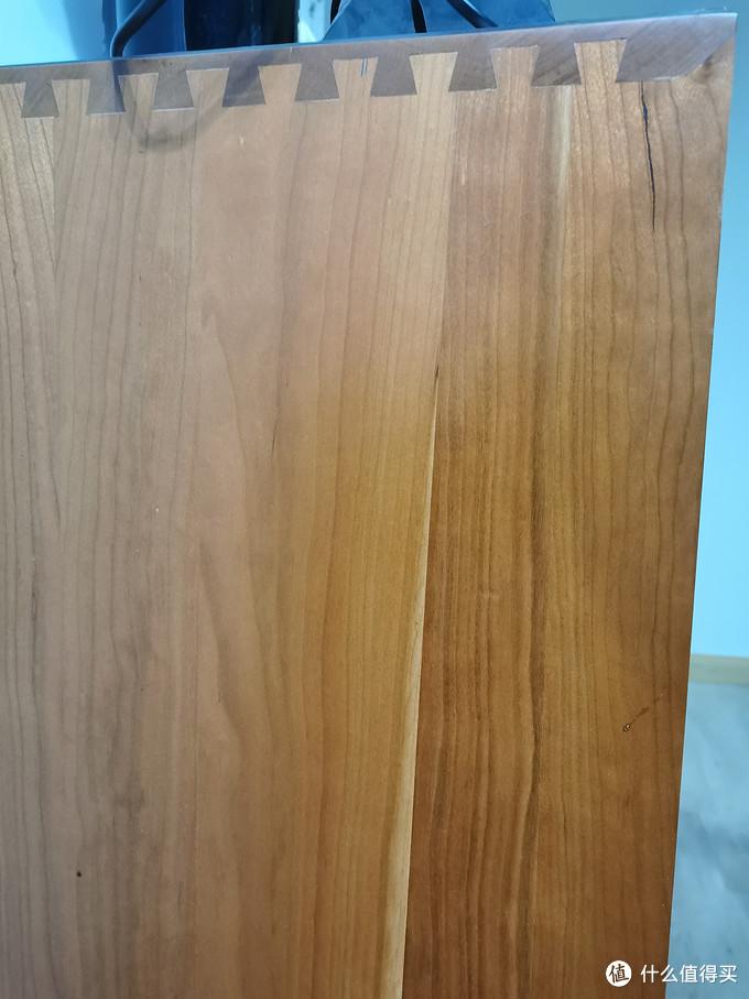首先,买这种直拼板做桌面,虽然看似省钱,但是由于没有望板、没有涨缩缝、没有穿带,所以长期使用下开裂、变形很难避免。