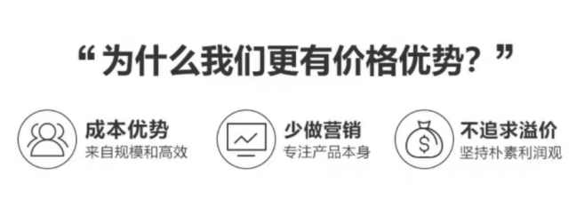 尤其在内容营销泛滥的今天,依旧坚持控制广告成本,把省下来的空间让利给消费者,避免让消费者为一件好产品付出过高的溢价。