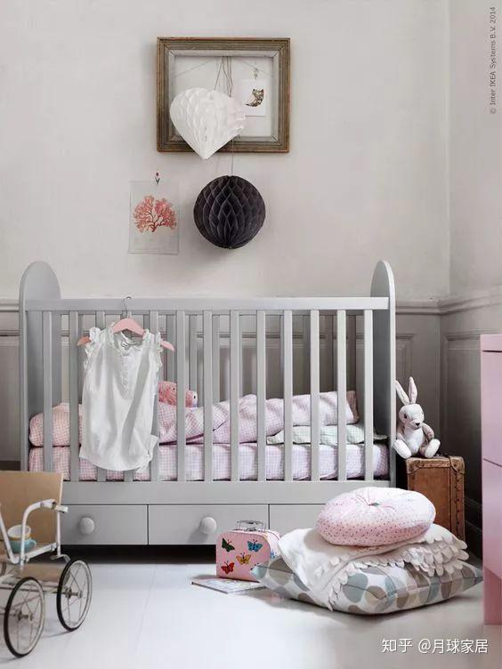 围栏可拆卸还有一个好处是可以直接将婴儿床和大人睡的床拼在一起,同睡不同床,方便夜间喂奶,同时能增进亲子感情,如果房间位置不大的话,这种设计就很省空间。
