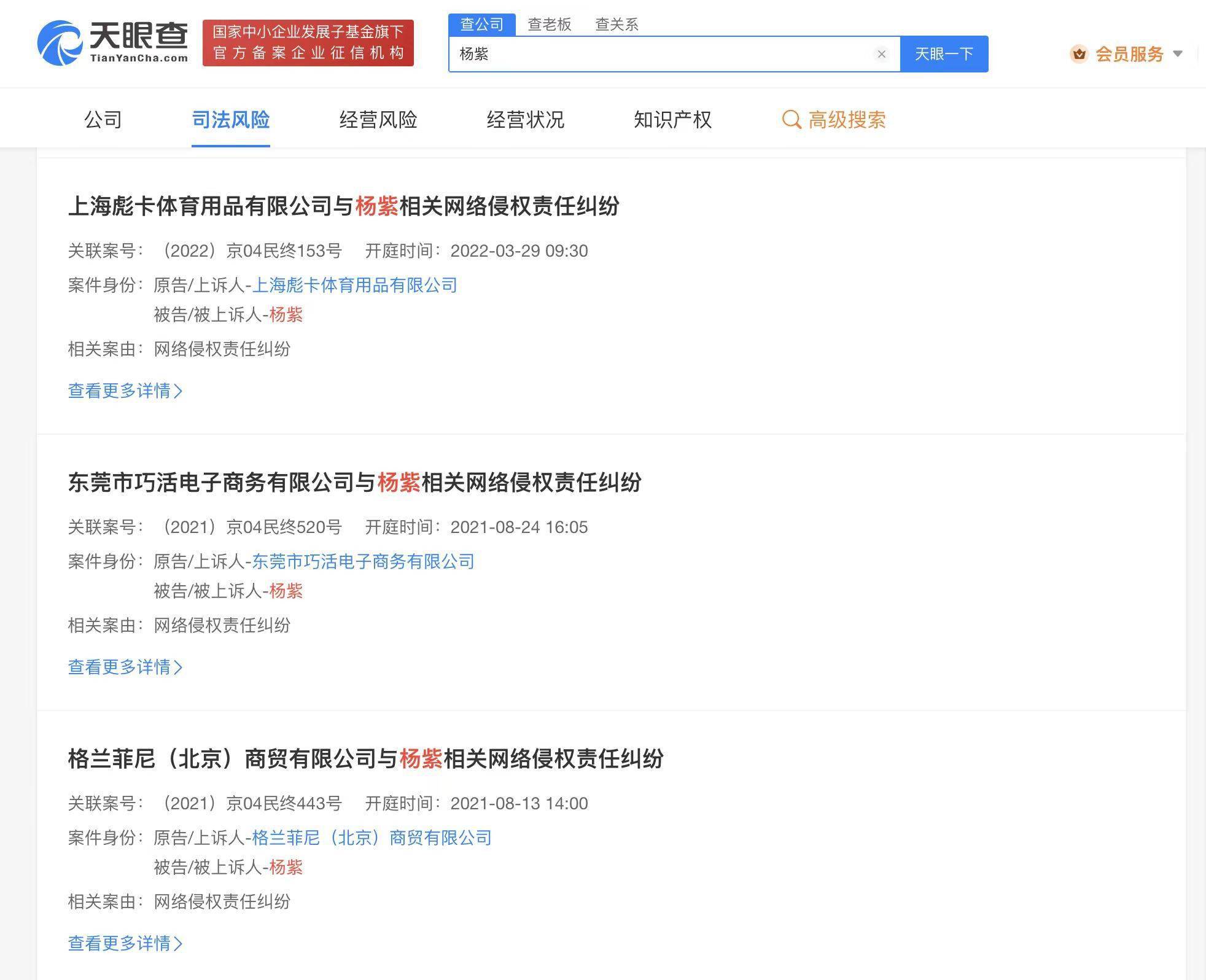 杨紫诉家具公司侵权 杨紫曾起诉多家公司侵权