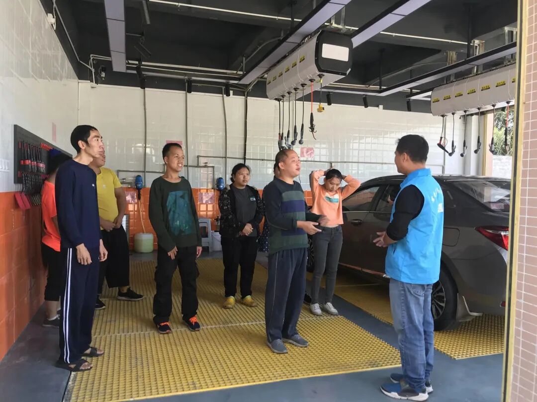 乐从喜憨儿洗车中心是由乐从镇首家“政·企·社”合力打造通过商业手法解决残疾人就业的社会企业,在提供社会职能岗位的同时,通过专业的社会工作手法透析残疾人就业模式,运用优势视角挖掘残疾人在就业中的优势,探索支持性就业的先行、可行途径。
