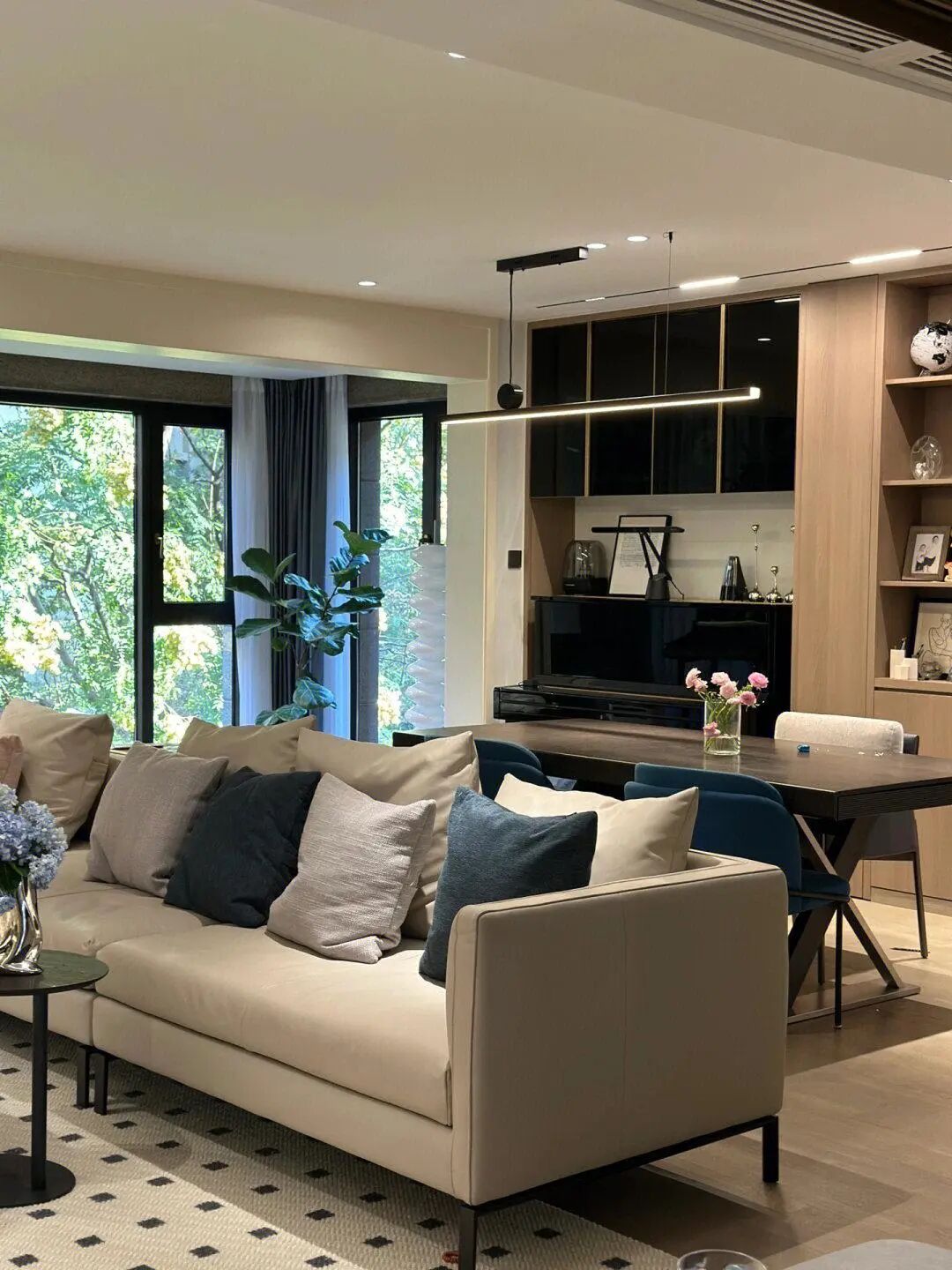 清晨的大落地窗,把一天之中最治愈的风景引入家中,宛若一幅被自然染色的油画,将美丽定格在这一刻。看着眼前的景色,心中的一切烦恼都被消散了,好幸福啊!