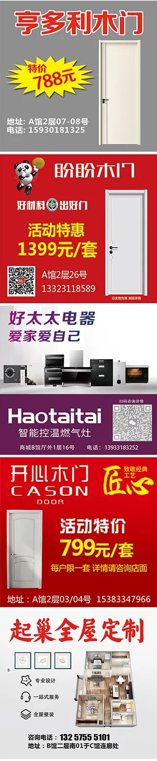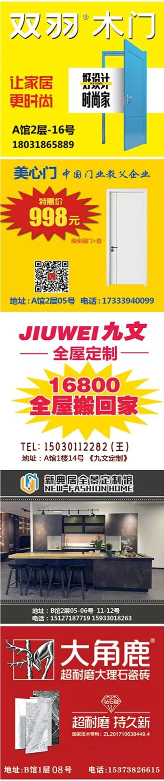 A馆:防盗门、定制衣柜、石材、瓷砖、室内门、卫浴门、推拉门