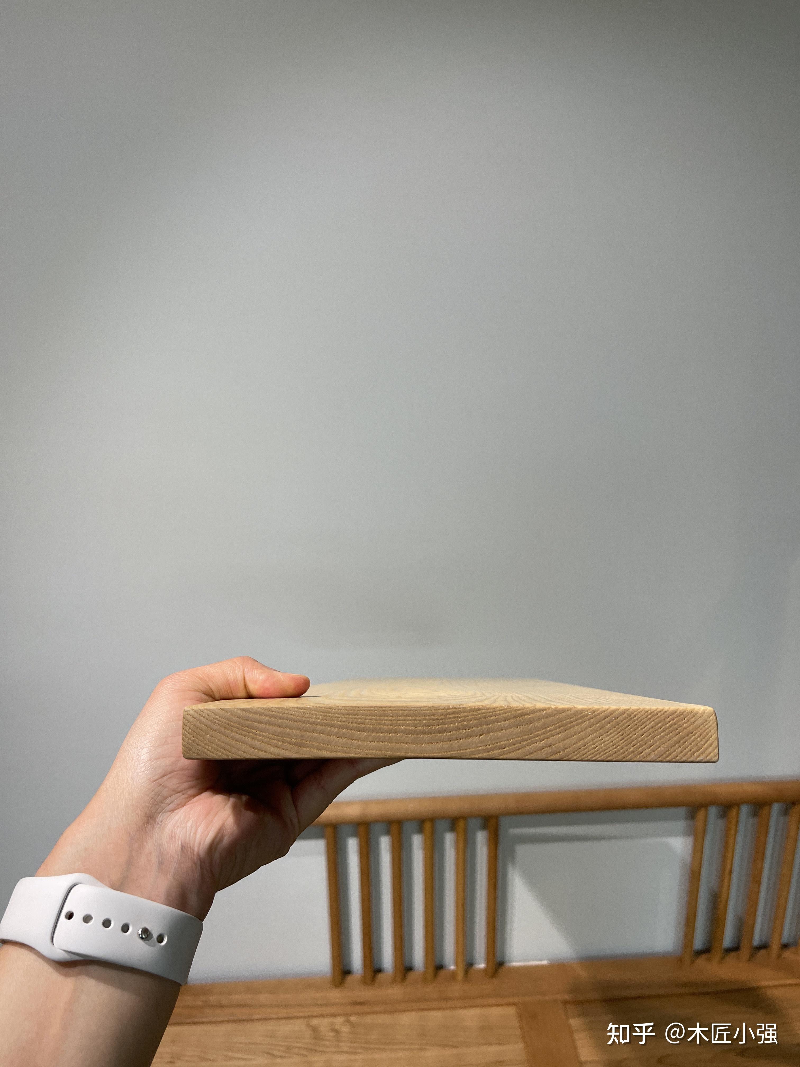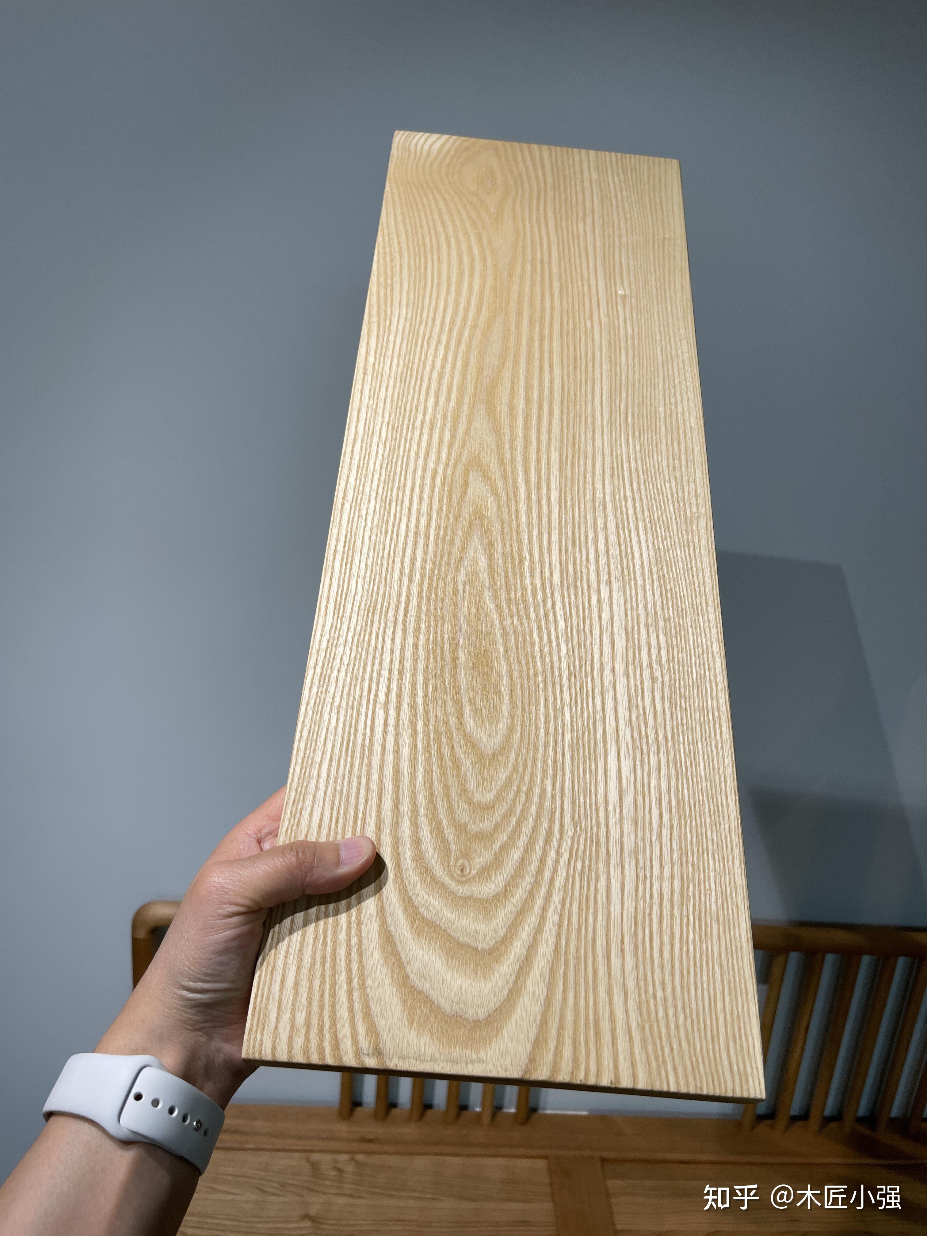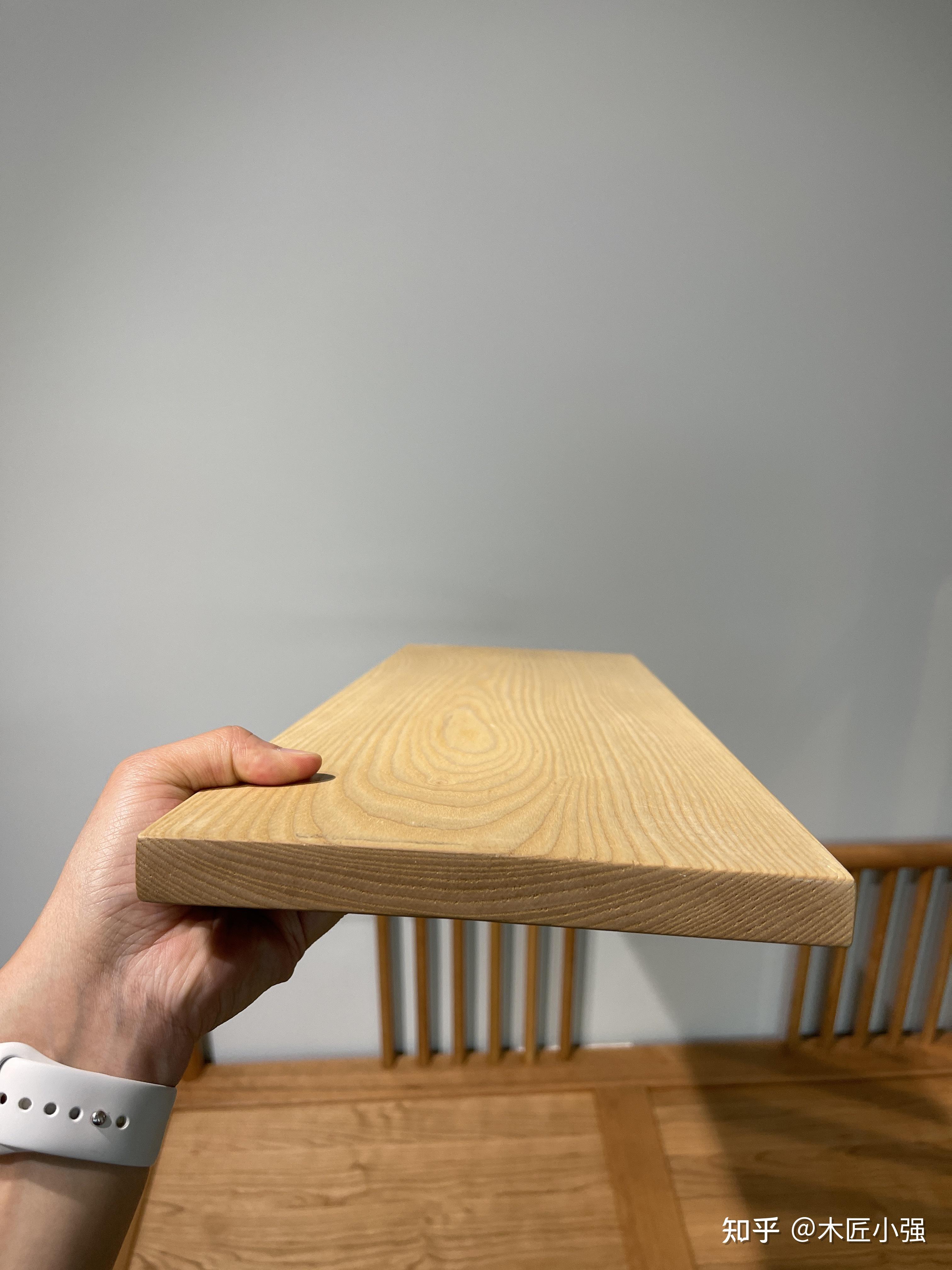 看这块板,他是白腊木原木锯材,也就是从树上切下来烘干,没有进行任何组合,原木本木,就像说原切牛排是从牛身上切下来一样。