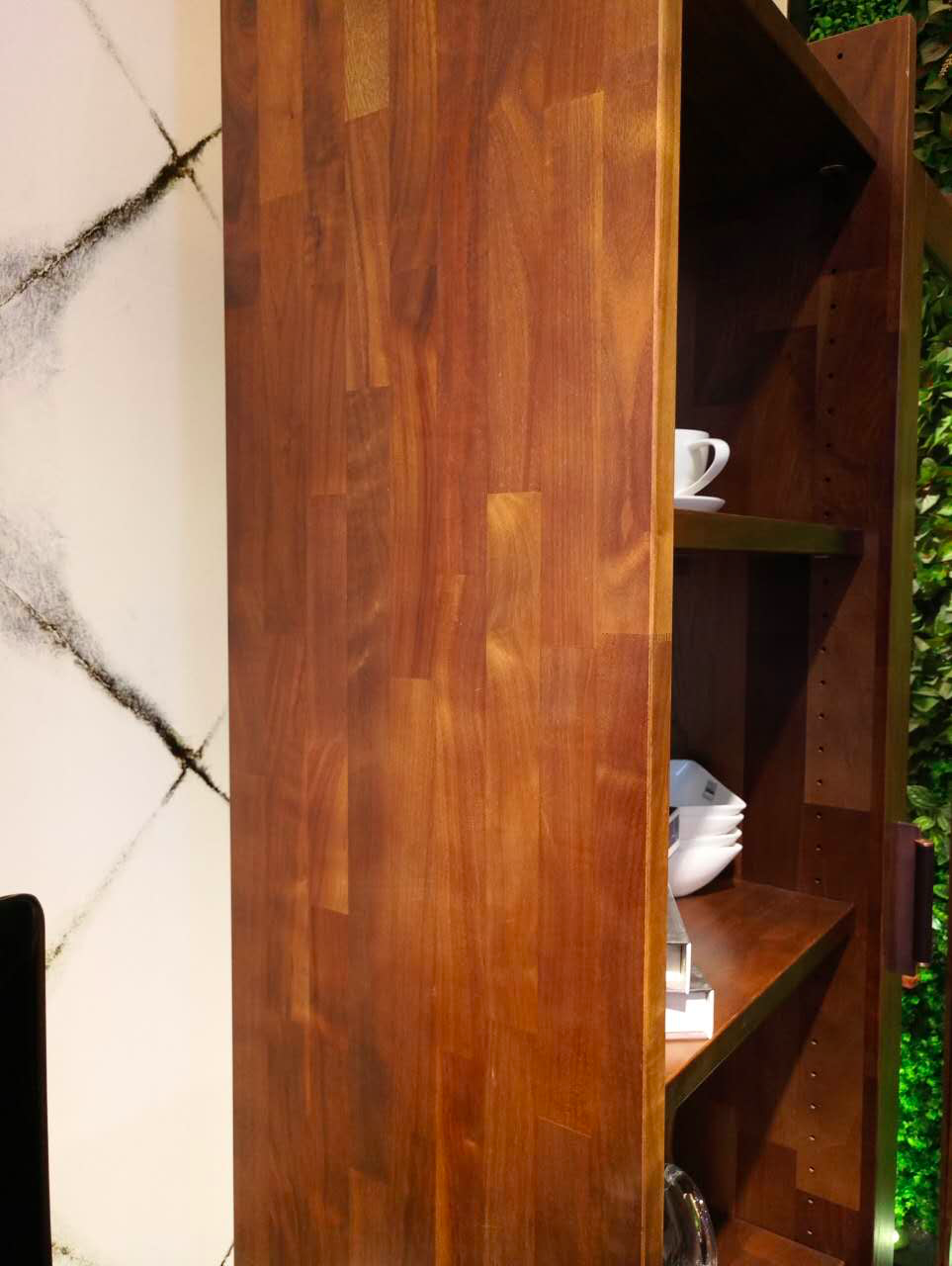 当然指接板不止橡胶木一种,黑胡桃木也有。而且大多数情况下,配合其他的原料使用,用在背板内板等位置