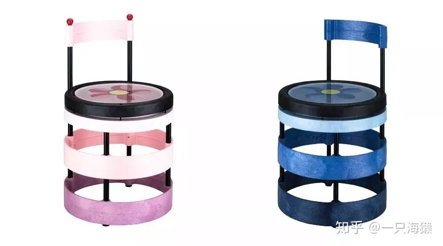 比利时的玩具品牌 EcoBirdy,利用塑料再生新材料制作了一套颜色绚丽、轻便实用的儿童家具。