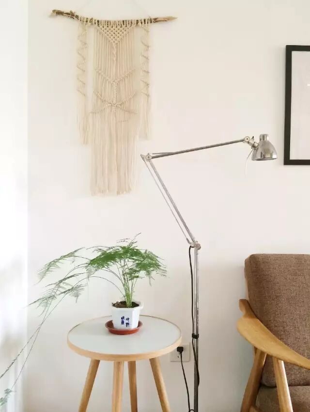 设计简约的落地灯占用空间小,无论放在沙发角或是放在床头,都是不错的选择。小圆桌上摆放一株小植物,让浮躁的心安定下来,享受惬意的独处时光。