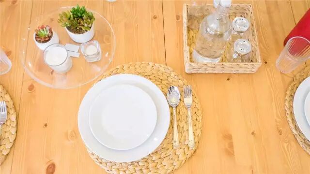 淡色系的木质餐桌使餐厅看上去更加清新明亮,透明花瓶与简约餐具的精致摆放让人舒心,也增添了几分食欲。