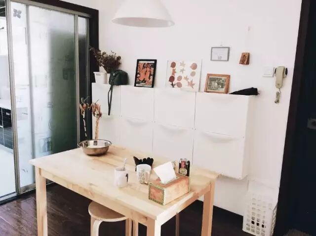 简约的木制餐桌,给居室带来温暖自然的感觉,让每一餐都更温馨更美味~门厅地方狭小,多个鞋柜随心所欲组合收纳众多鞋子,让你每天进出门时感到舒心而从容。