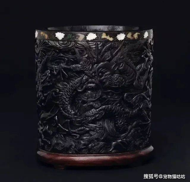 明 周制 鱼龙海兽紫檀笔筒