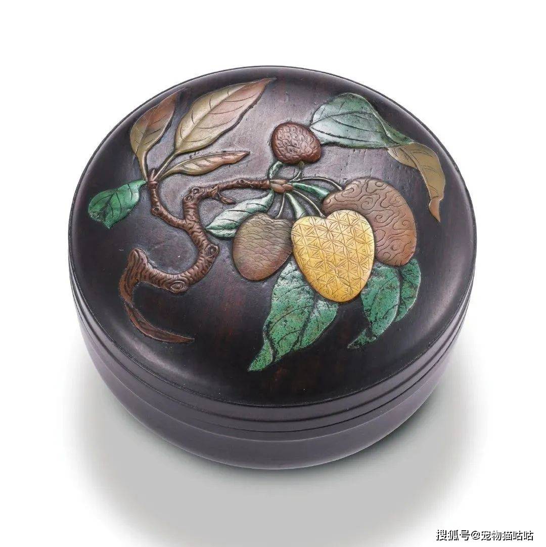明末至清初法周柱制紫檀嵌宝荔枝图盖盒