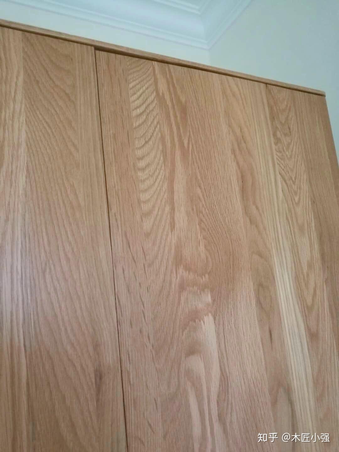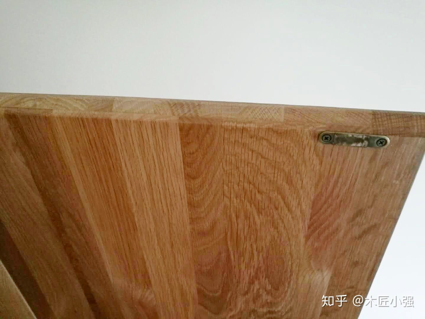 整个面板是由三层组成的,中间是由很窄的木条拼接而成,两边有比较薄的正常宽度的木片拼接,而且上下端拼接的还不一样,也就是里面用的木条应该是短木条或者其他……