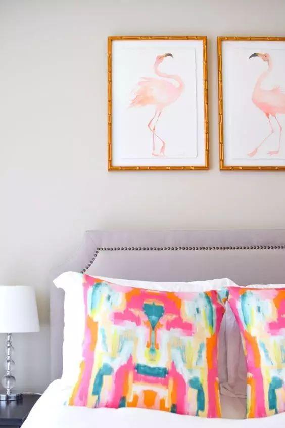 火烈鸟挂画,比较适合的配色是白+粉+金。