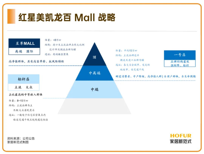 ©红星美凯龙深圳后海至尊Mall李明表示:“深圳的南山区属于富人区,所以后海店就定位世界美学至尊家居生活mall,属于视觉美学的范畴,达到一个最top one的那种感觉,要往塔尖走,精致又有高端服务。前海店,定位打造轻奢时尚家居生活mall,给人一种年轻时尚的活力。吉龙店升级为国际轻奢家居生活mall。平湖店定位为网红时尚家居生活mall,融合了露营、西餐、酒吧等,吸引年轻人来打卡。”