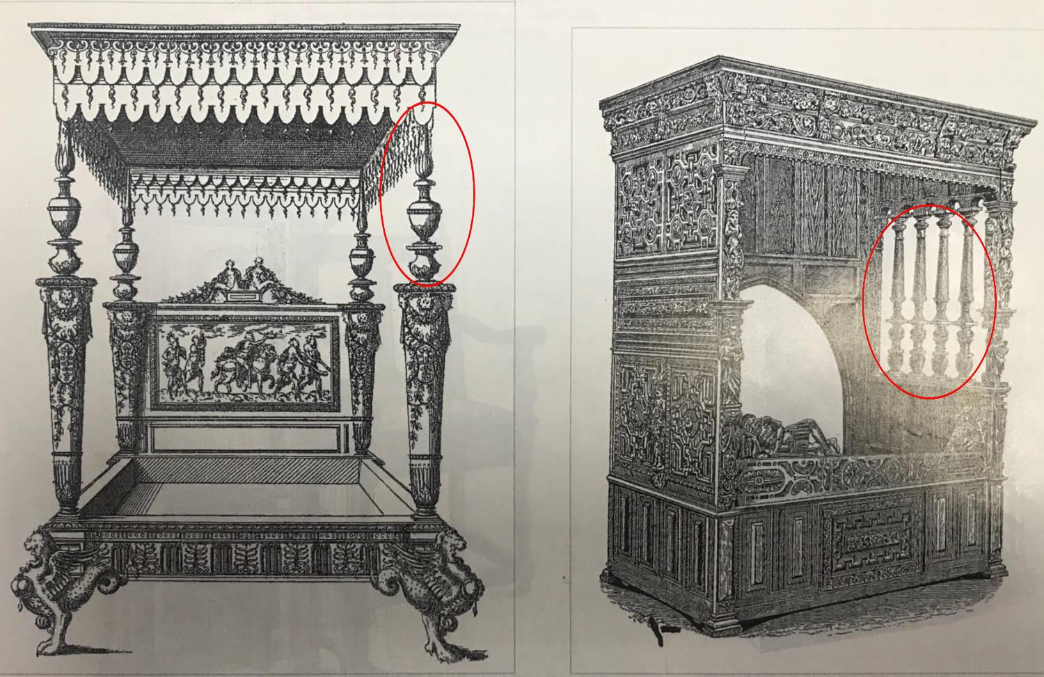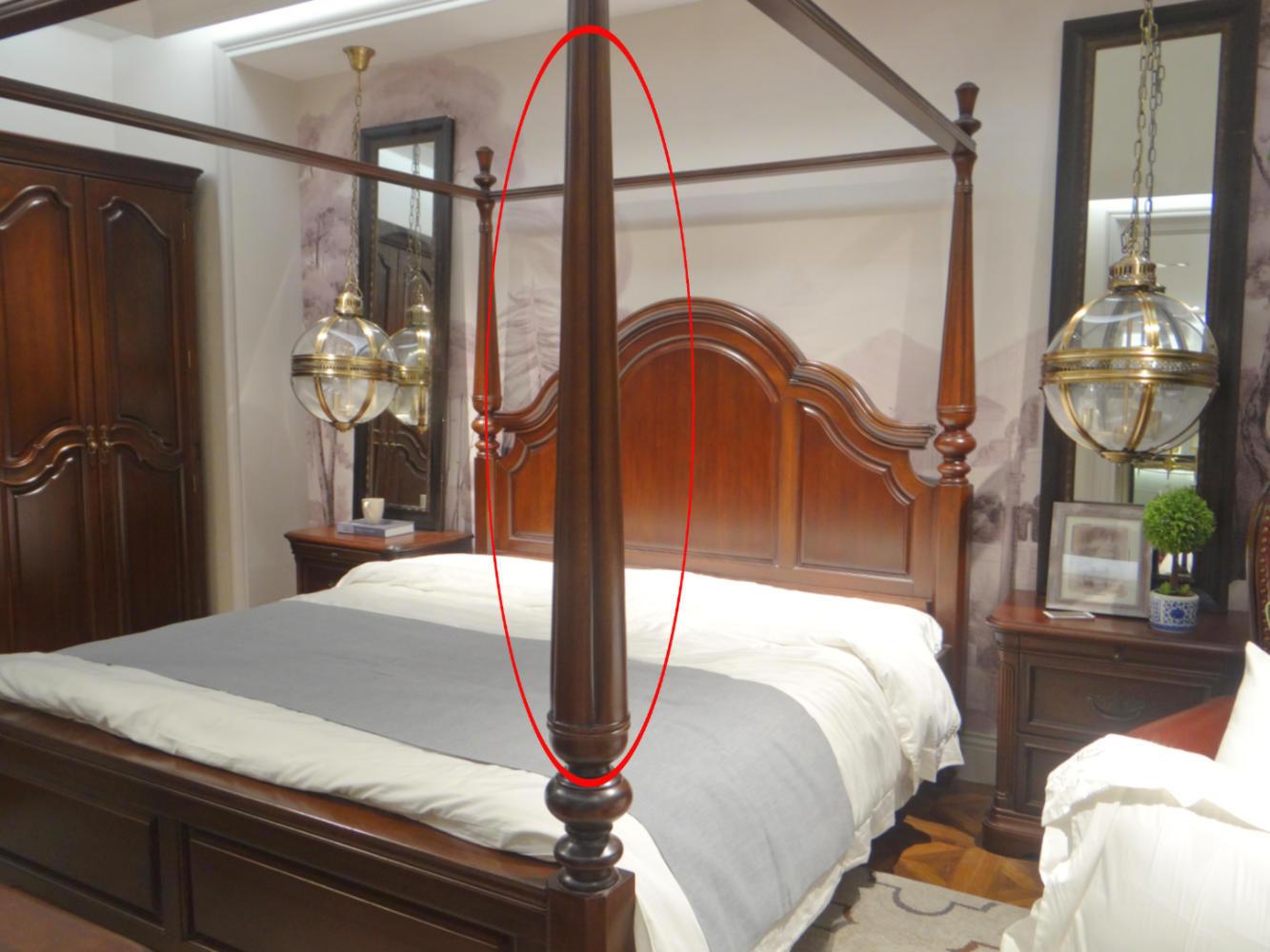 高耸的床柱长得像把一把骑士宝剑。其实,就是把一个甜瓜拉长。