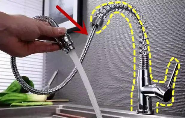 3、厨房的水龙头可以选择那种可拉伸的,这样使用的非常方便,清洁水槽可以360度无死角。