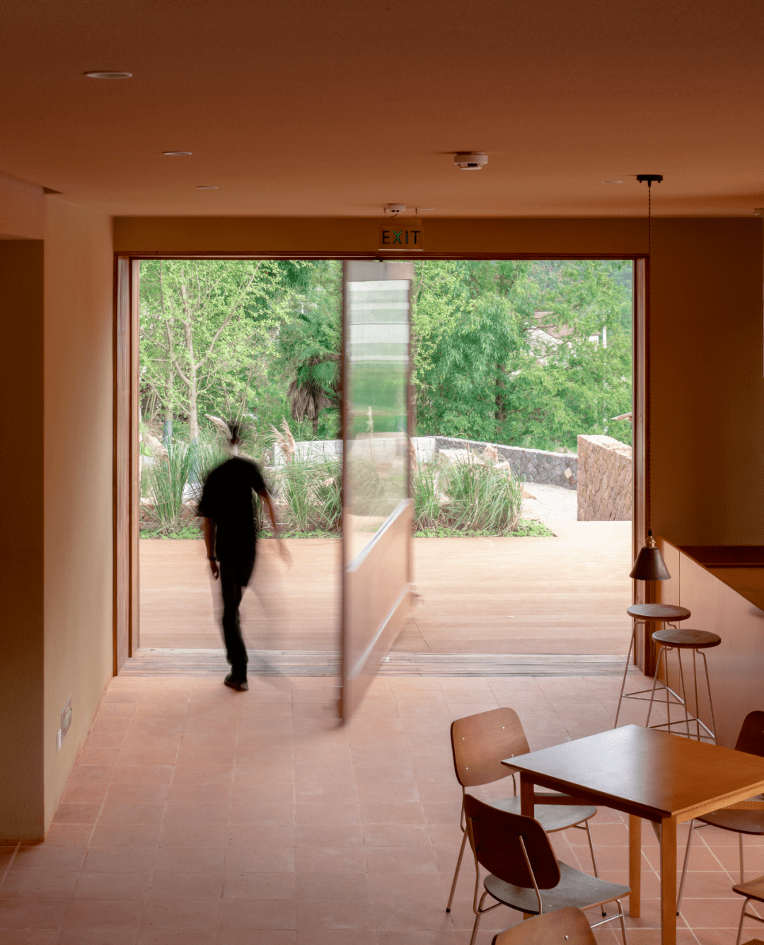 步入室内, 尽显设计师的格调和高级感,大面积的落地窗将 庭院全景引进屋内, 给人以通透的呼吸感。