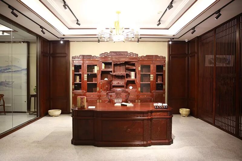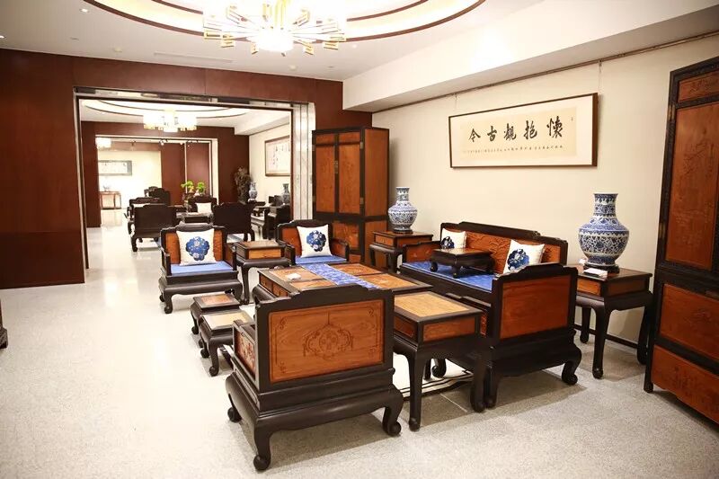 其中,明式家具、新中式家具相辅相成,花枝、酸枝、缅甸花梨、大叶紫檀、小叶紫檀应有尽有,更有三福的“国礼系列”。