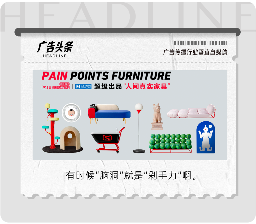 了解之后头条君发现,这是天猫超级品牌日联合红星美凯龙打造的一次新品营销,而且这场营销还有个好玩的主题——人间真实家具。