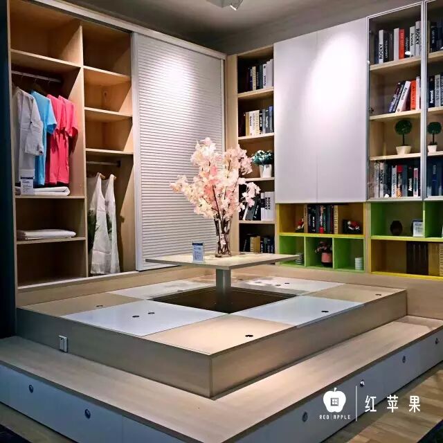 在红苹果的家具展厅里,定制衣柜、书柜、电视柜、床垫、沙发等琳琅满目。时尚、美观、大气的产品彻底征服了人们对红苹果产品的感观,不但品质上要得到用户的认同,同时造型、外观上也引领时尚潮流。