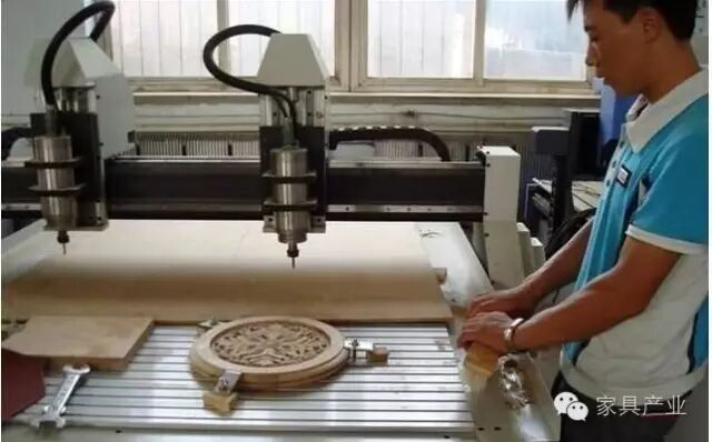 经过组装,有雕刻的堂板或者椅背板在组装之前都要上机雕刻,现在大部分都是数控雕刻机雕刻,虽然是机器雕刻,但是比较复杂的图案也要雕刻一天一宿才能完成。