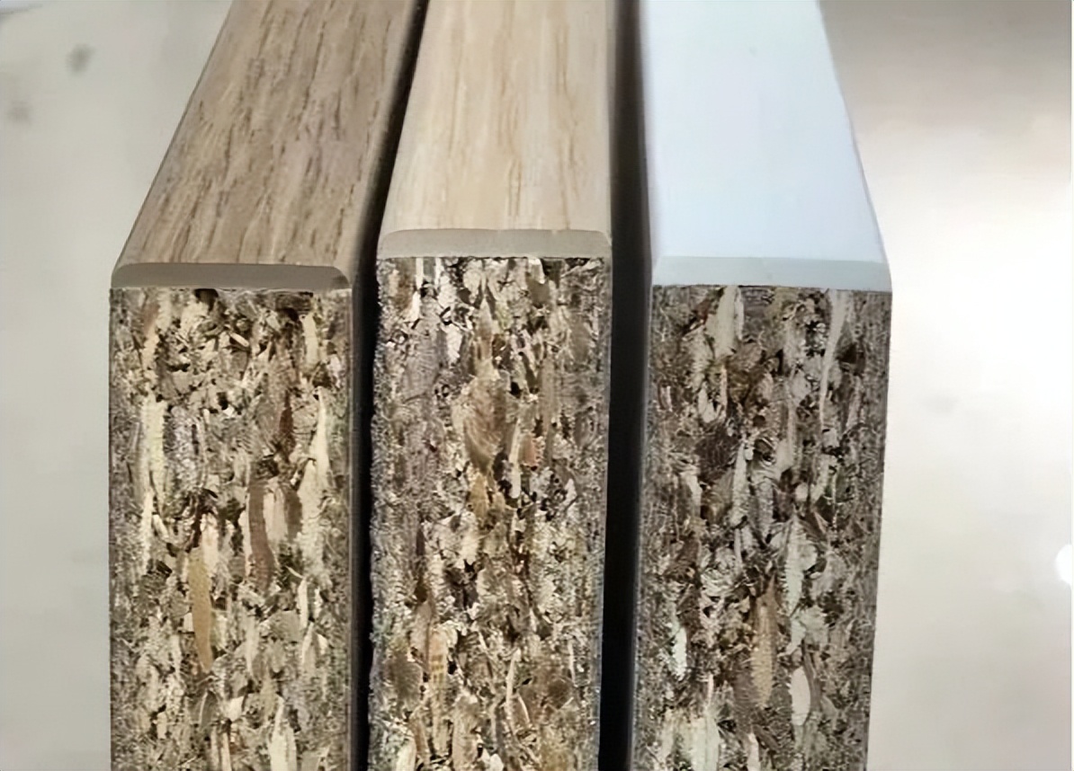 颗粒板的结构是把木材打成碎片,然后用胶水压制而成。