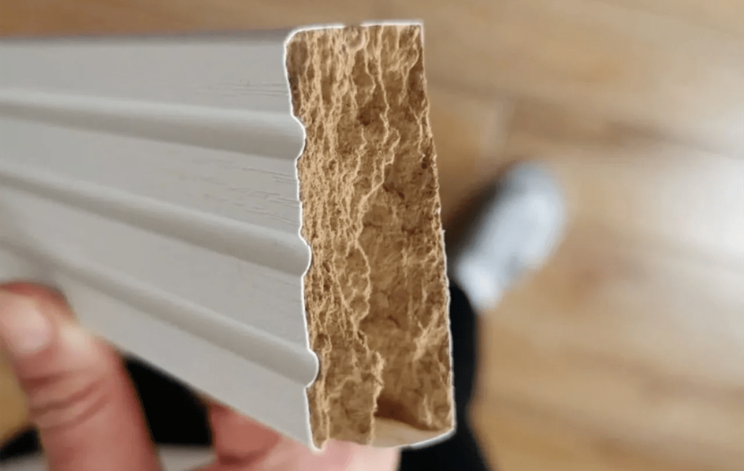 密度板的结构是把木材打成粉末,然后用胶水压制而成。有些劣质的密度板,甚至可以用回收的纸皮、旧地板打成粉末来制作。