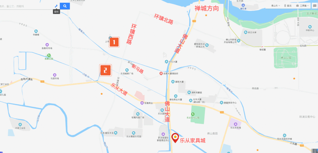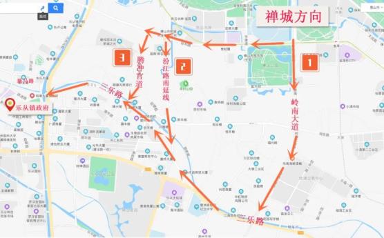 ①佛山一环环镇西路出入口—环镇西路—新马路—乐从镇政府