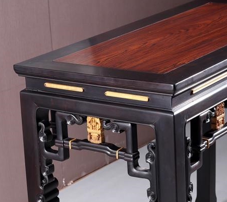 其次,紫光檀属于高端红木家具,其收藏价值与商业价值远远高于红酸枝,而红酸枝只是红木家具中的中高端产品,价格适中,一套紫檀家具的用料从原料来讲远远高于红酸枝家具几倍之多,而成品后的紫光檀家具重量也是红酸枝不能之匹敌的,光光这一点就远远超出了红酸枝。