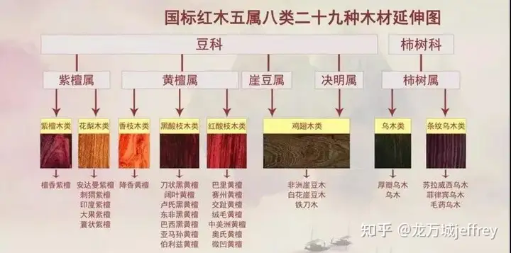 辨别方法:国家根据密度等指标对红木进行了规范,把红木规范为:二科、五属、八类、二十九种。