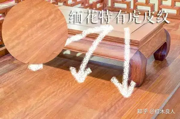 比如缅甸花梨这种材料,有虎皮纹的就是非常好的料了,这种料一般都会用在桌面板这种显眼的地方。