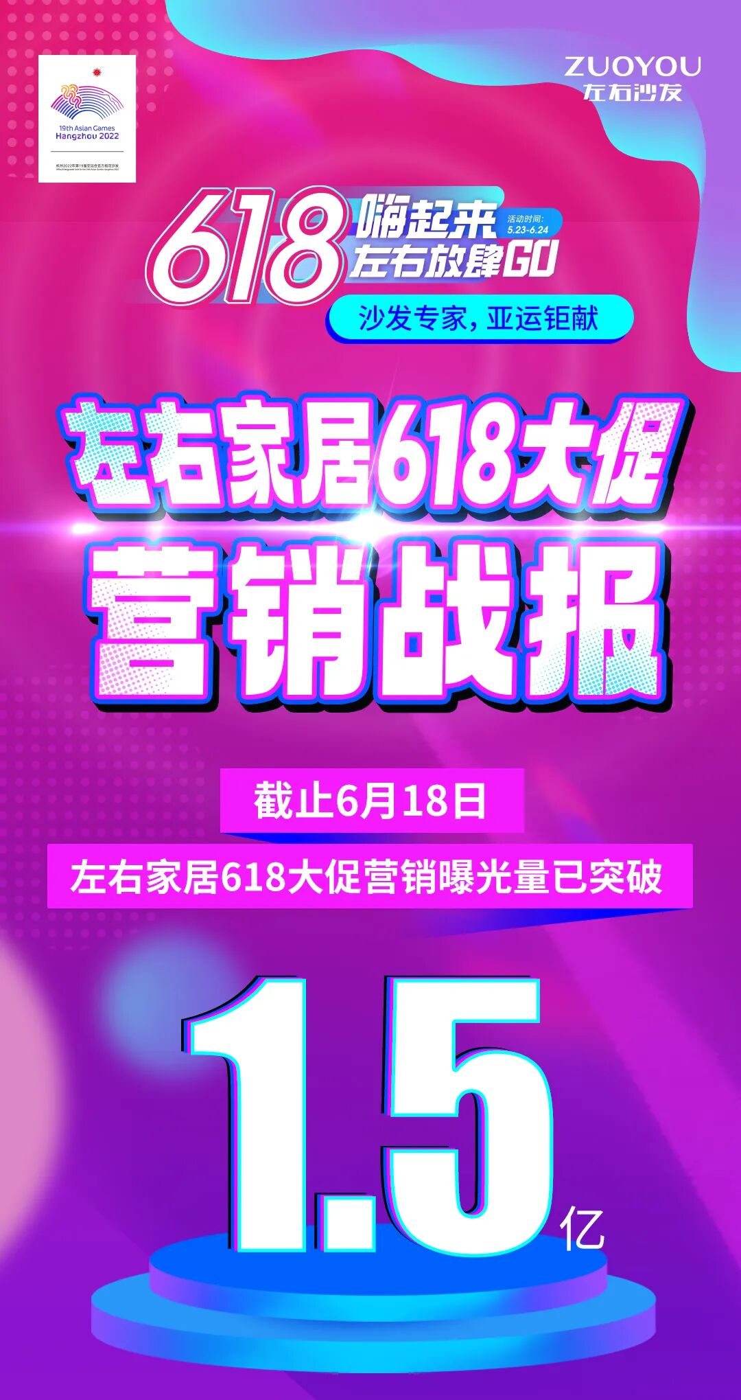 华丰家居城旗下华丰·苏美馆、华丰·富士馆、华丰·海森馆、华丰·华隆馆、华丰·红连天馆、华丰·博奥馆六大场馆联动,共计50万㎡展区,数千家工厂店参展,数十万夏季新品家具一同展出,全方位展现新消费主义理念下的行业趋势、潮流时尚的新品家具。此外,乘着展会的东风,同属于华丰家居城的居然之家华丰店也将推出一系列优惠活动,满足顾客消费需求。618嗨购热潮|左右家居618大促营销战报出炉