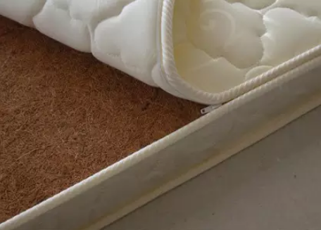 椰棕是椰子果皮纤维制作,柔韧性不如山棕。以前的硬棕垫一般会用复合胶水做粘合剂,透气性透水性差,容易潮湿、生虫。现在,制作椰棕床垫的正确工艺是高温热压——把棕丝和热熔纤维丝混合,纤维丝受热收缩,就把棕丝固定了,高温还能杀菌杀虫。