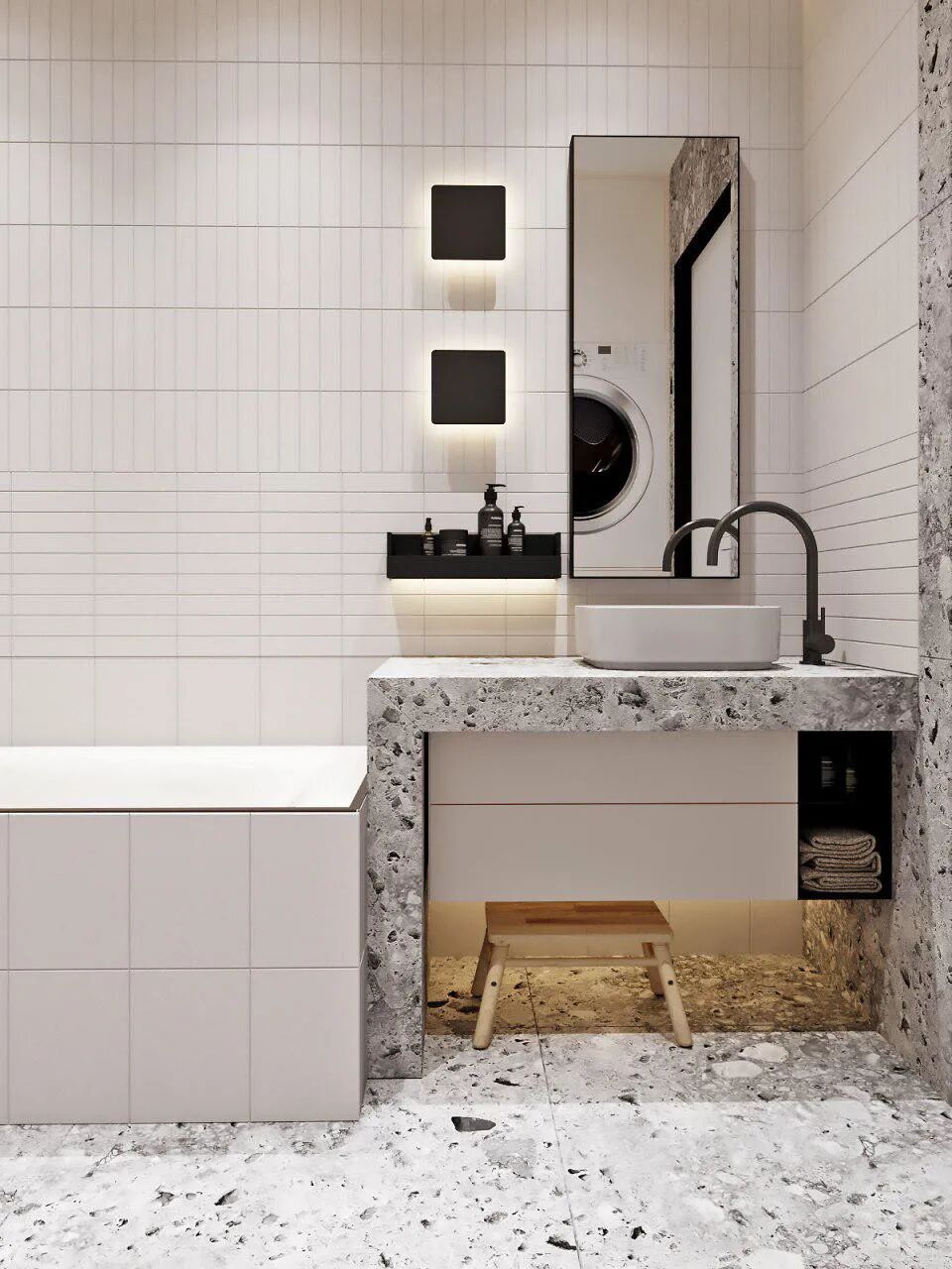 主卫空间以白色和水磨石的搭配,简约很有艺术性,让空间显得更为精致