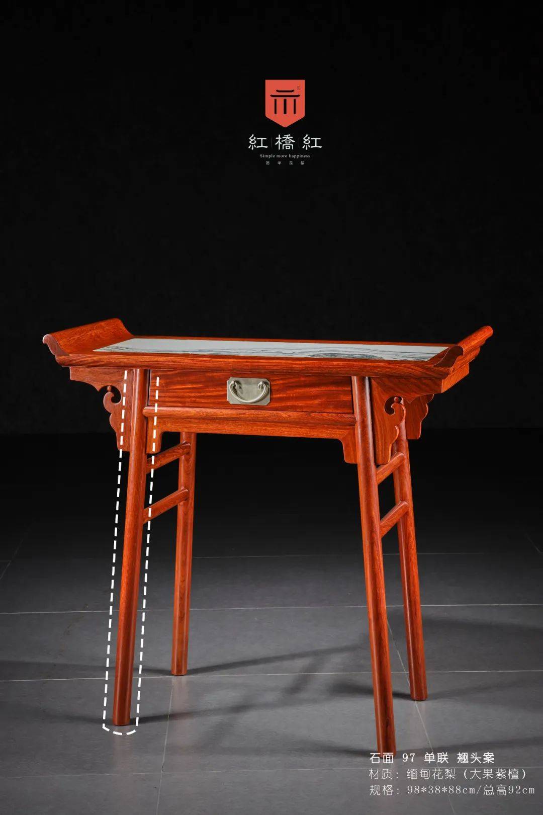 像案桌这类轻型的高型家具一般用平腿,显得更加修长挺拔,也更加稳定,而茶几这类矮形家具则一般用鼓腿,看起来更加生动。
