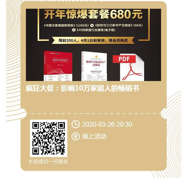 中国泛家居趋势报告(1280元)+如何与三亿新中产交朋友(66元)+300份家居行业严选报告(电子版)抢购价仅需680元!