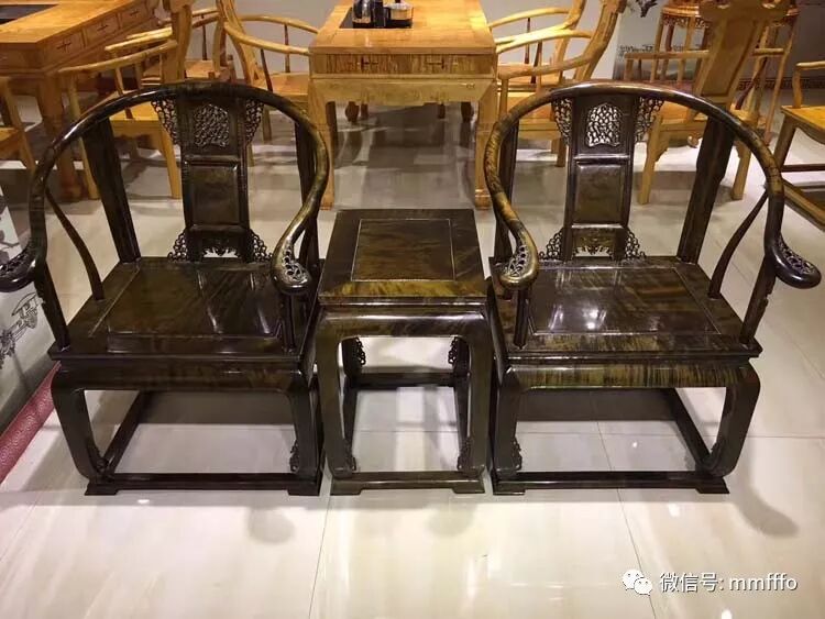 下图是大叶桢楠水渚成阴沉料颜色的圈椅,一般来冒充小叶桢楠阴沉料