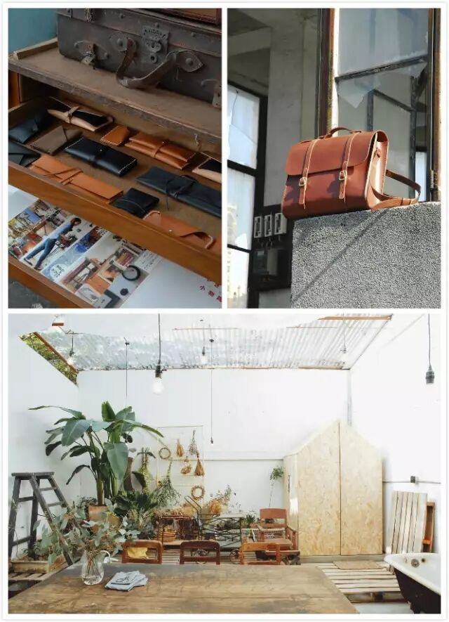 直物人是设计师,在曲折隐蔽的旧厂房里造了这样一个空间,从事建筑空间设计,陈设皮具、自行车、布匹、日用品、家居杂志、古早旧物等杂货,物品本身的质感加之摆放方式使得八九十年代的淡淡怀旧气息四处游走,甚至能嗅到些穿越时间的濡湿之味,又被植物及茶香中和过滤。小店中氛围的打磨始于室内外空间的营造,主人坚持探寻一种始于建筑又不拘于建筑的美好生活方式,追求手作的自然之美,喜好一切有趣的有用无用之物。O MAN LEATHER HANDMADE 老民手作是直物人工作室推出的手作品牌,遵循质朴的手作方式,希望把朴实耐用的作品更为直接地呈现在使用者面前。