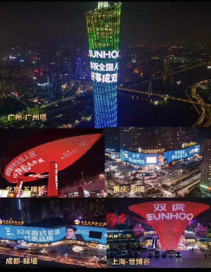 2022年1月30日,双虎家居携《人民日报》“好事成双 虎虎生威”新年祝福,以整版版面刊发的形式向全国人民拜年。与此同时,北京、上海、广州、重庆、成都等全国5大重点城市最大户外地标媒体依次点亮,“好事成双 虎虎生威”双虎春联登陆五大城市,打响2022年春节传播品牌战役。双虎启动UGC(User Generated Content,用户生产内容)互动营销策略,全国1500家线下经销商门店,都将收到《人民日报》,经销商以及家居用户拿上报纸,前往当地地标户外媒体打卡拍照、拍视频,上传至朋友圈,用一种独特的“虎年问候”社交方式向身边的亲朋好友传递双虎的祝福。