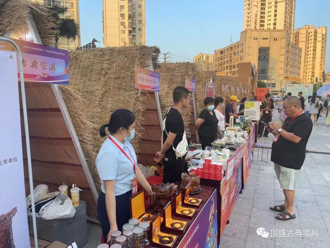 6月3日,由省旅游和文化广电体育厅主办的“加强非遗系统性保护 促进可持续发展”2023年海南非遗购物节活动在海口市东坡老码头广场举办,众多海南非遗好物亮相,丰富非遗消费方式和消费场景。海南国盛古典家具有限公司作为海南黄花梨家具制作技艺非遗传承人应邀参加了本次活动。