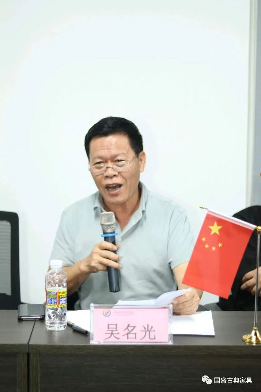 吴名光董事长讲话,受到与会代表的赞赏和共鸣。吴总结合国盛红木这些年的发展历程,讲了国盛红木品牌建设主要三个方面的着力点: